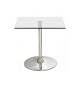 Mesa de diseño multiusos, cuadrada, cromada, cristal templado de 10 mm. de espesor. Altura 73 cms. Otras medidas y formatos disponibles. Uso en interiores