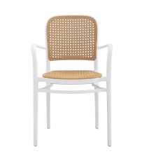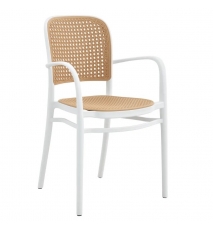 Sillón apilable, polipropileno blanco y beige. Uso en exterior e interior. Otros colores disponibles. Mesas a juego.