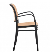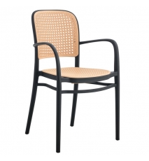 Sillón apilable, polipropileno negro y beige. Uso en exterior e interior. Otros colores disponibles. Mesas a juego.