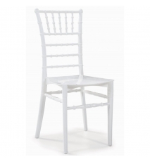 Silla de catering y eventos, apilable, polipropileno de color blanco. Uso en exterior e interior. Silla muy resistente para uso en hostelería y doméstico. Inyección asistida por gas.