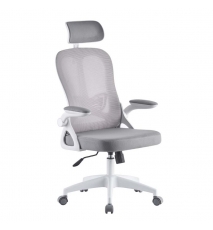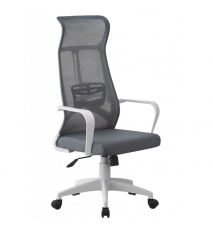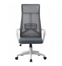 Sillón de oficina, alto, ergonómico, gris, malla negra.