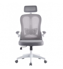 Sillón de oficina, blanco, gas, basculante, malla y asiento gris. Otros colores disponibles.