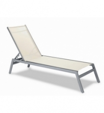 Tumbona de polipropileno blanco - sin brazos -, 5 posiciones, apilable, ruedas, tejido textilene tórtora. Disponible recambio de textilene. Consultar precios por cantidad