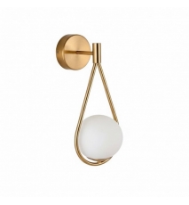 Aplique de pared, diseño, metal dorado, tulipa de cristal blanco