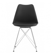 Silla de diseño, cromada, carcasa de polipropileno negra, cojín de asiento en similpiel negra. Otros colores disponibles.