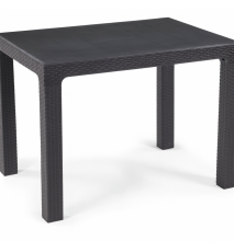Mesa de diseño, imitación a rattán, polipropileno de color antracita. Otros colores y medidas disponibles. Silla y sillón a juego