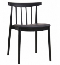 Silla apilable, patas de aluminio anodizado, polipropileno negro brillo. Uso en exterior e interior.