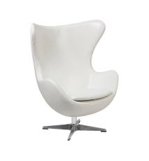 Sillón de diseño, giratorio, base y columna cromada, tapizado en similpiel blanca. Otros colores disponibles.