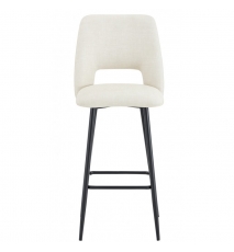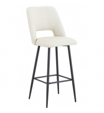 Taburete de diseño, patas metálicas con acabado negro, asiento y respaldo tapizados en tejido linen gris claro. Sillón a juego
