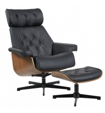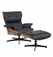 Butaca y ottoman, diseño, carcasa de madera contrachapada, tapizado en similpiel negra. Otros colores disponibles.