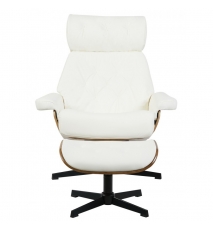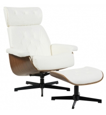 Butaca y ottoman, diseño, carcasa de madera contrachapada, tapizado en similpiel blanca. Otros colores disponibles.