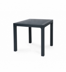 Mesa de diseño, imitación a rattán, polipropileno de color antracita, 80 x 80 cms. Otros colores y medidas disponibles. Silla y sillón a juego
