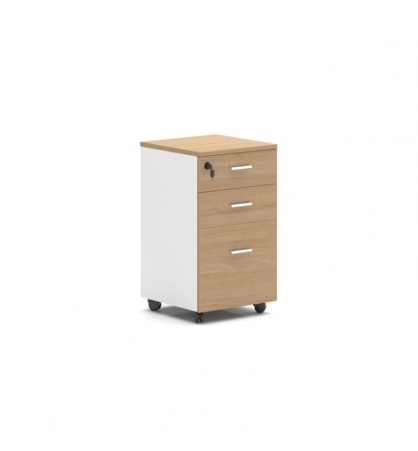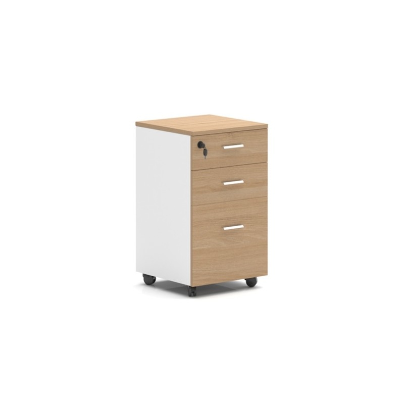 Cajonera de 3 cajones rodante, bilaminado blanco y roble