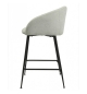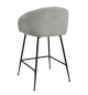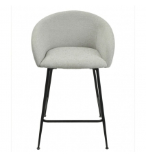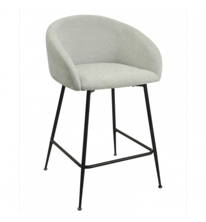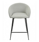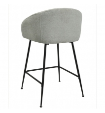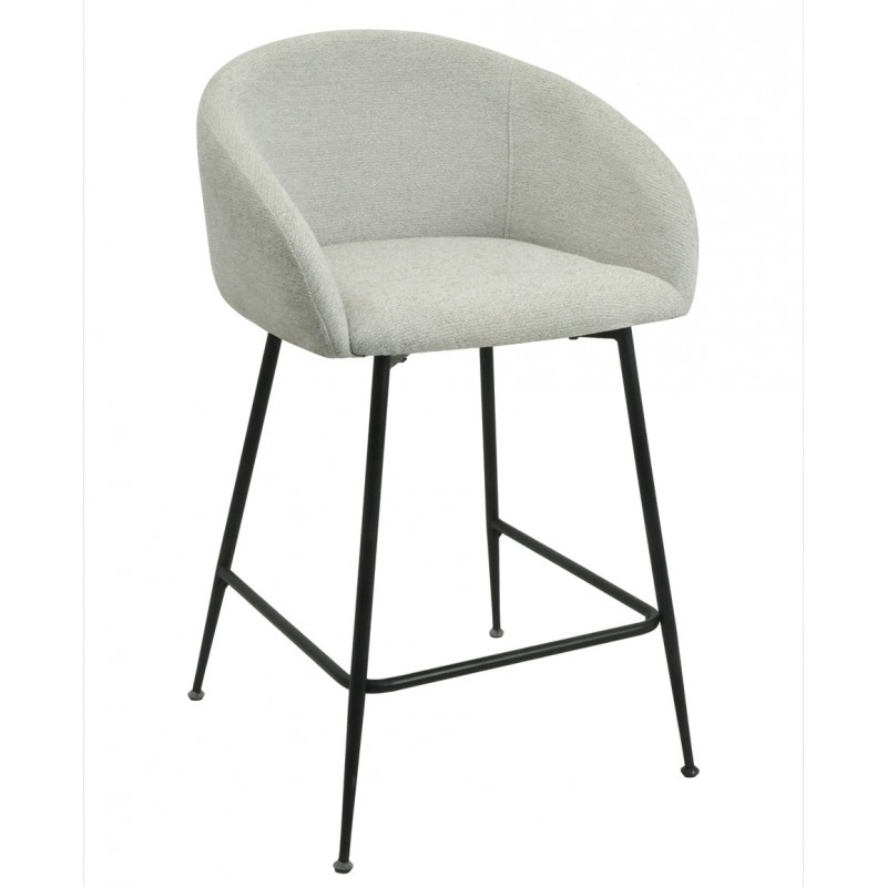 Taburete de diseño, patas metálicas con acabado negro, asiento y respaldo tapizados en tejido linen gris claro. Sillón a juego