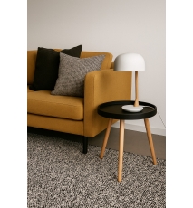 Mesa auxiliar baja de diseño, patas de madera de haya, tapa de polipropileno de color negro. Otros colores disponibles.