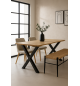 Mesa de líneas simples ideal para todo tipo de ambientes. Destaca por su marcado estilo escandinavo al tener la tapa de madera y las patas metálicas negras.