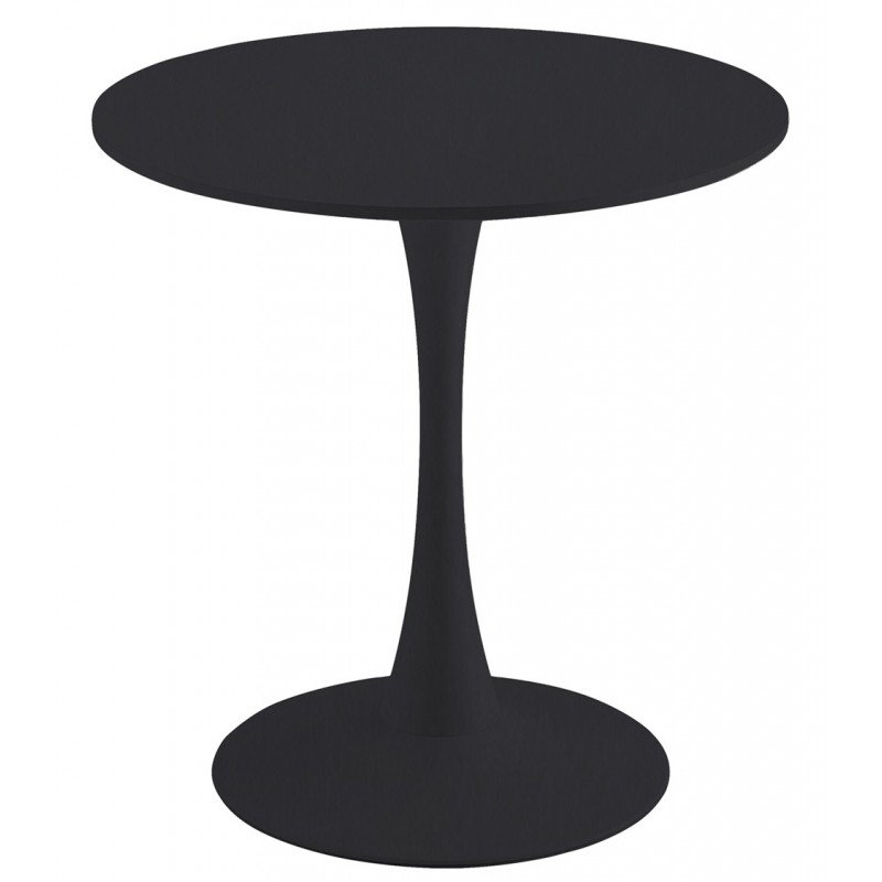 Mesa de diseño, base metálica, tapa bilaminada negra, 70 cms de diámetro