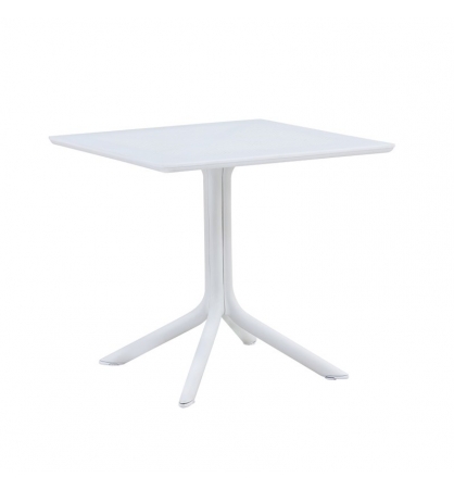 Mesa de diseño, polipropileno de color blanco, 80 x 80 cms. Otros colores disponibles. Silla y sillón con el mismo acabado