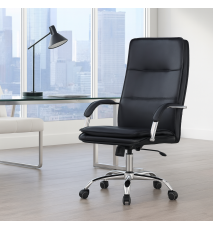 Este modelo dispone de un respaldo alto tapizado en similpiel con interior mullido que aporta una comodidad extra al usuario y recoge la espalda y la zona lumbar. Ideal para largas jornadas de trabajo.
