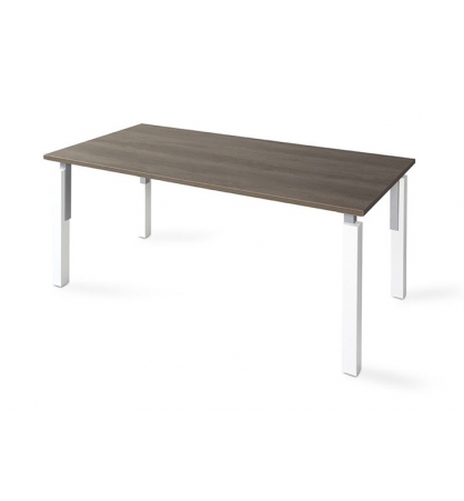 Mesa de diseño moderno de líneas rectas, con encimera de melamina y patas tubulares. Es el modelo perfecto para los que buscan algo distinto y original. Esta pieza rompe con el mobiliario clásico de una oficina y dispone detalles metálicos en la parte superior de sus patas.