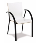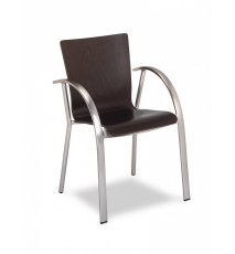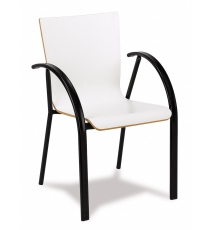 Sillón con armazón de tubo de acero color blanco o negro, asiento y respaldo carcasa de madera de haya contrachapada y barnizada, laminado o lacado a elegir. Apilable.