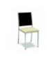 Silla con armazón de tubo acerado plastificado, color negro o blanco, respaldo de madera barnizada y asiento tapizado color a elegir.