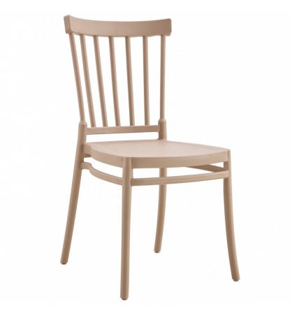 Silla apilable, tratamiento anti UV, polipropileno tórtora, uso en exterior e interior. Otros colores disponibles. Taburete a juego