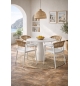 Sillón apilable, tratamiento anti UV, polipropileno blanco, respaldo en cuerda de color natural, uso en exterior e interior. Otros colores disponibles.