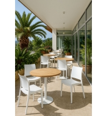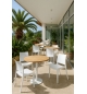 Silla apilable, tratamiento anti UV, polipropileno blanco, uso en exterior e interior. Otros colores disponibles.