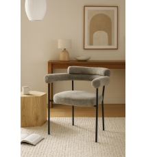 Sillón moderno, metal, tapizada bouclé gris. Otros colores disponibles