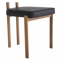 Una pieza sencilla de líneas simples y que nunca pasa de moda. Esta silla aporta elegancia y confort a cualquier estancia. Dispone de estructura en madera barnizada muy resistente y de asiento tapizado en polipiel de alta calidad.