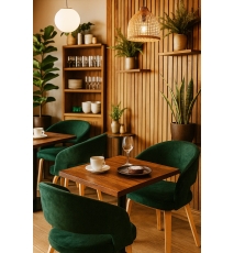 La combinación de la madera y la polipiel se ajustan a la perfección en salones y comedores de estilo clásico. Ideal para establecimientos de hostelería como restaurantes, mesones, etc.