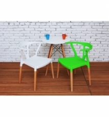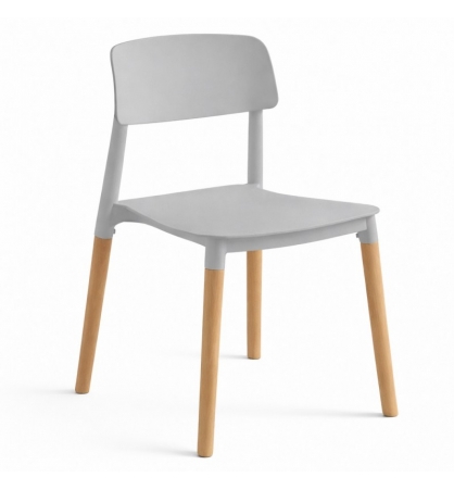 Silla de diseño, apilable, madera, asiento y respaldo de polipropileno de color gris oscuro. Otros colores disponibles