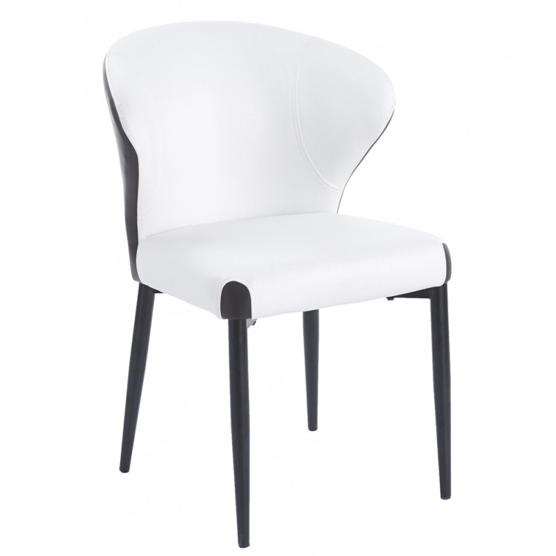Silla de diseño, armazón metálico con acabado epoxi negro, tapizada en similpiel marrón y blanco. Otros colores disponibles.