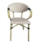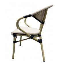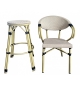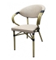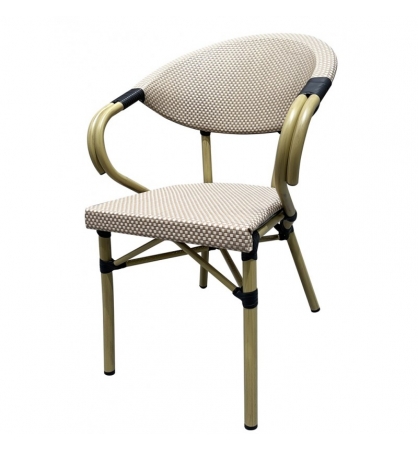 Sillón de diseño, aluminio, asiento y respaldo en mesh beige y marrón. Uso en exterior e interior. Otros colores disponibles. Taburete a juego