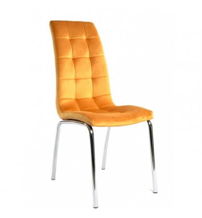 Silla moderna, cromada, tapizada velvet amarillo. Otros colores disponibles