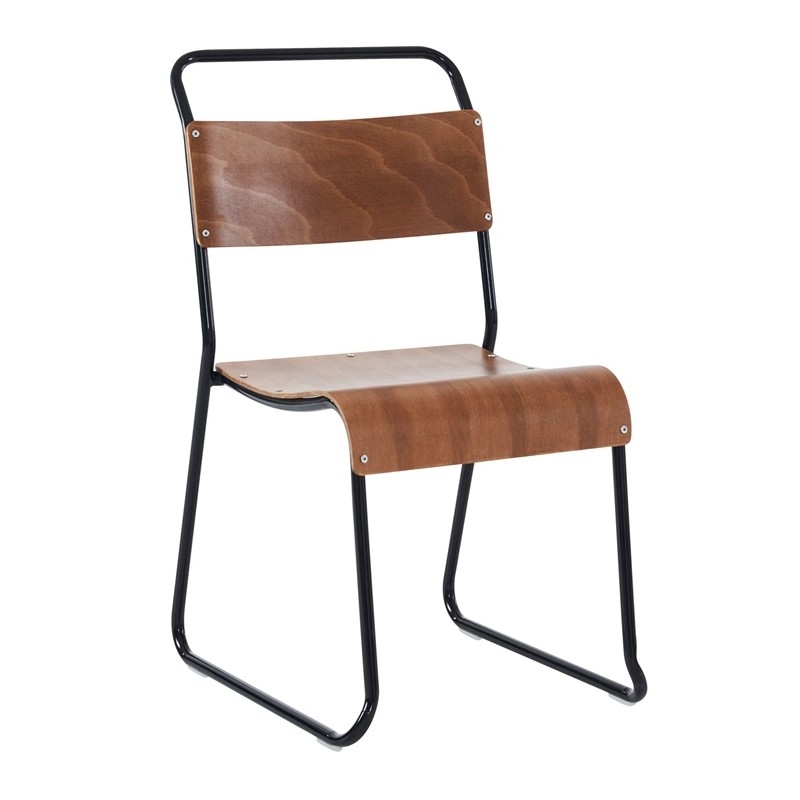 Silla multiusos, apilable, negra, contrachapado abedul, acabado barnizado natural. Taburete a juego.