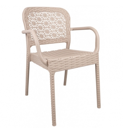 Sillón apilable, imitación a rattán, polipropileno beige. Uso en exterior e interior. Otros colores disponibles.