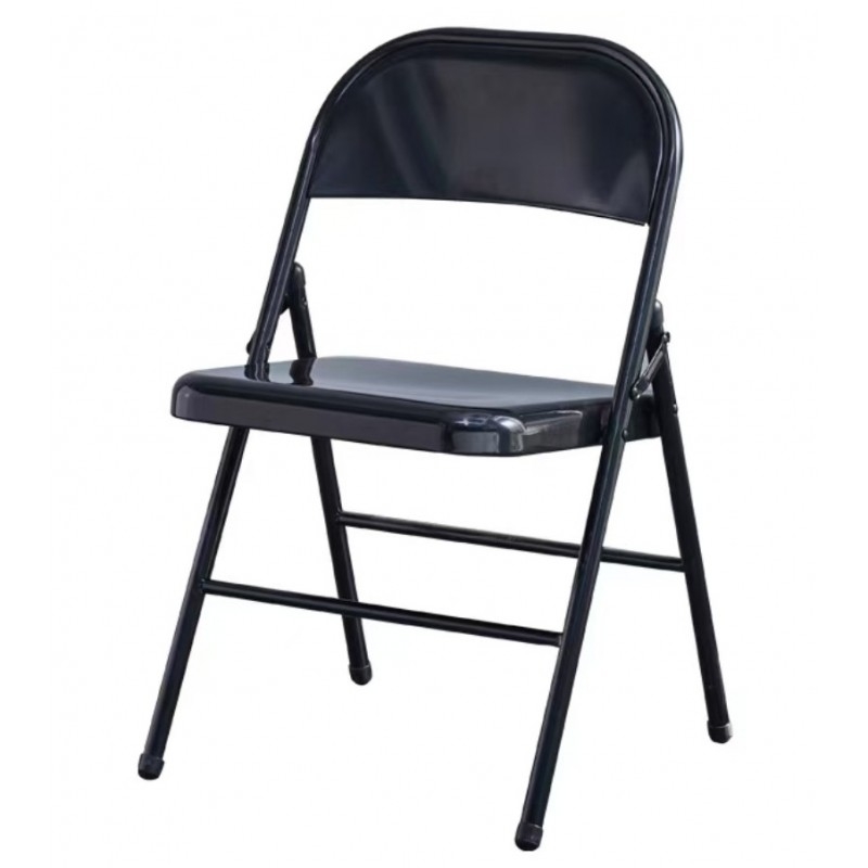 Silla plegable, armazón tubular con acabado en epoxi negro, asiento y respaldo de metal de color negro