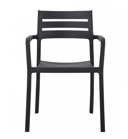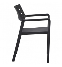 Sillón apilable, polipropileno negro. Uso en exterior e interior. Otros colores disponibles. Mesas a juego.