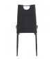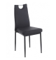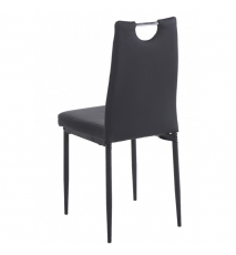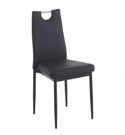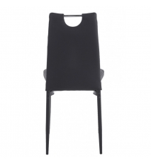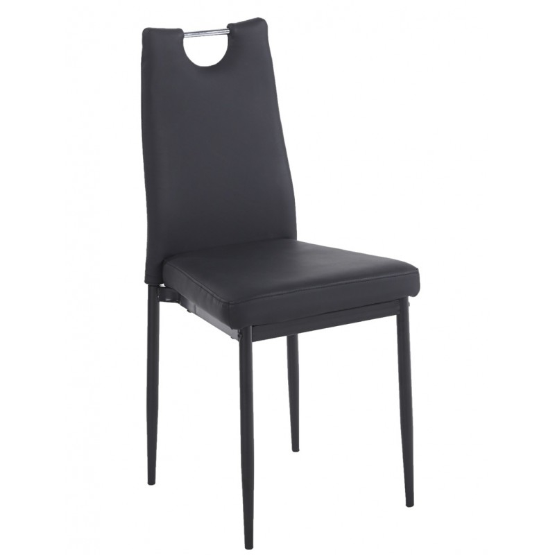 Silla de diseño, apilable, armazón metálico con acabado epoxi negro, asiento y respaldo tapizados en similpiel negro.