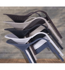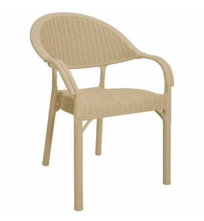 Sillón apilable, imitación a rattán, polipropileno capuccino. Uso en exterior e interior. Otros colores disponibles.