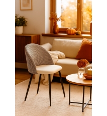El asiento en similpiel muy resistente, agradable al tacto y con un fácil mantenimiento. EL respaldo tapizado en tejido con dibujo de pata de gallo, la hacen un modelo único de elegancia y estilo para cualquier ambiente.