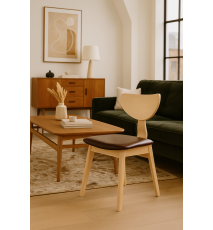 Una pieza sencilla de líneas simples y que nunca pasa de moda. Esta silla aporta elegancia y confort a cualquier estancia. Dispone de estructura en madera barnizada muy resistente y de asiento tapizado en polipiel de alta calidad.