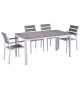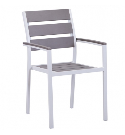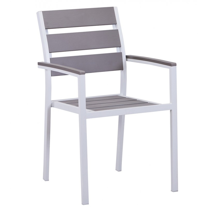 -Armazón de metal con acabado blanco, asiento, respaldo y reposabrazos de polywood de color gris