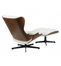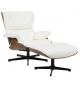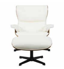 Butaca y ottoman, diseño, carcasa de madera contrachapada, tapizado en similpiel blanca. Otros colores disponibles.