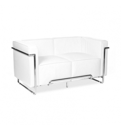 Sofá de 2 plazas, acero inoxidable, tapizado similpiel blanca.