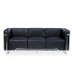 Sofá de 3 plazas, acero inoxidable, tapizado similpiel negra.