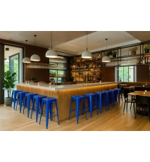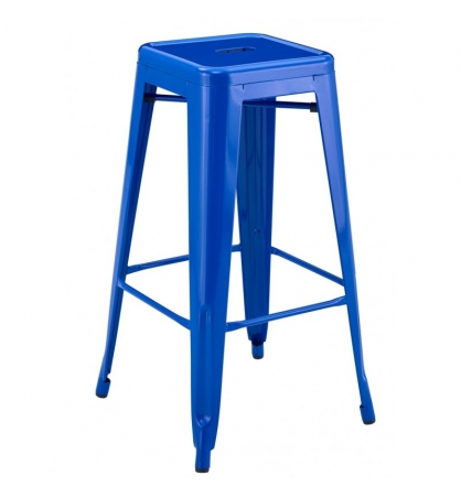 Taburete de diseño, estructura de acero, pintado en azul. Uso en interiores o exteriores. Otros colores disponibles. Mesa, silla y sillón a juego