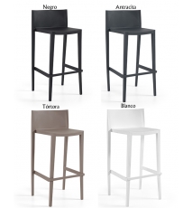 Taburete de diseño, con respaldo, polipropileno inyectado reforzado con fibra de vidrio, color blanco. Tratamiento anti rayos UV. Uso en exterior e interior. Silla, sillón y mesa a juego. Otros colores disponibles.